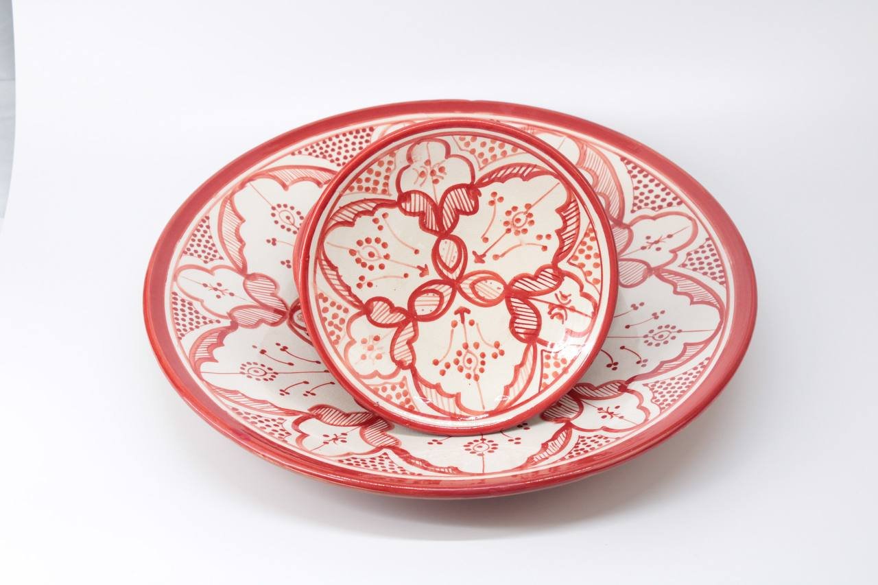 Plate Set 4+1 – Handmade Moroccan Ceramic Plates Red